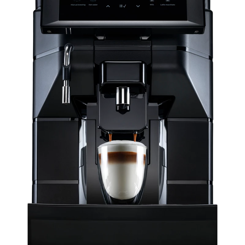 Rewolucja wśród eksSaeco Aurora M2 to wydajny, automatyczny ekspres do kawy przeznaczony do biur i przestrzeni komercyjnych. Dzięki dużym zbiornikom na wodę (4 l) i kawę ziarnistą (1,2 kg), wbudowanemu młynkowi, dotykowemu panelowi sterowania oraz automatycznemu systemowi spieniania mleka, umożliwia przygotowanie do 50 filiżanek dziennie – od intensywnej kawy czarnej po kremowe cappuccino i latte.