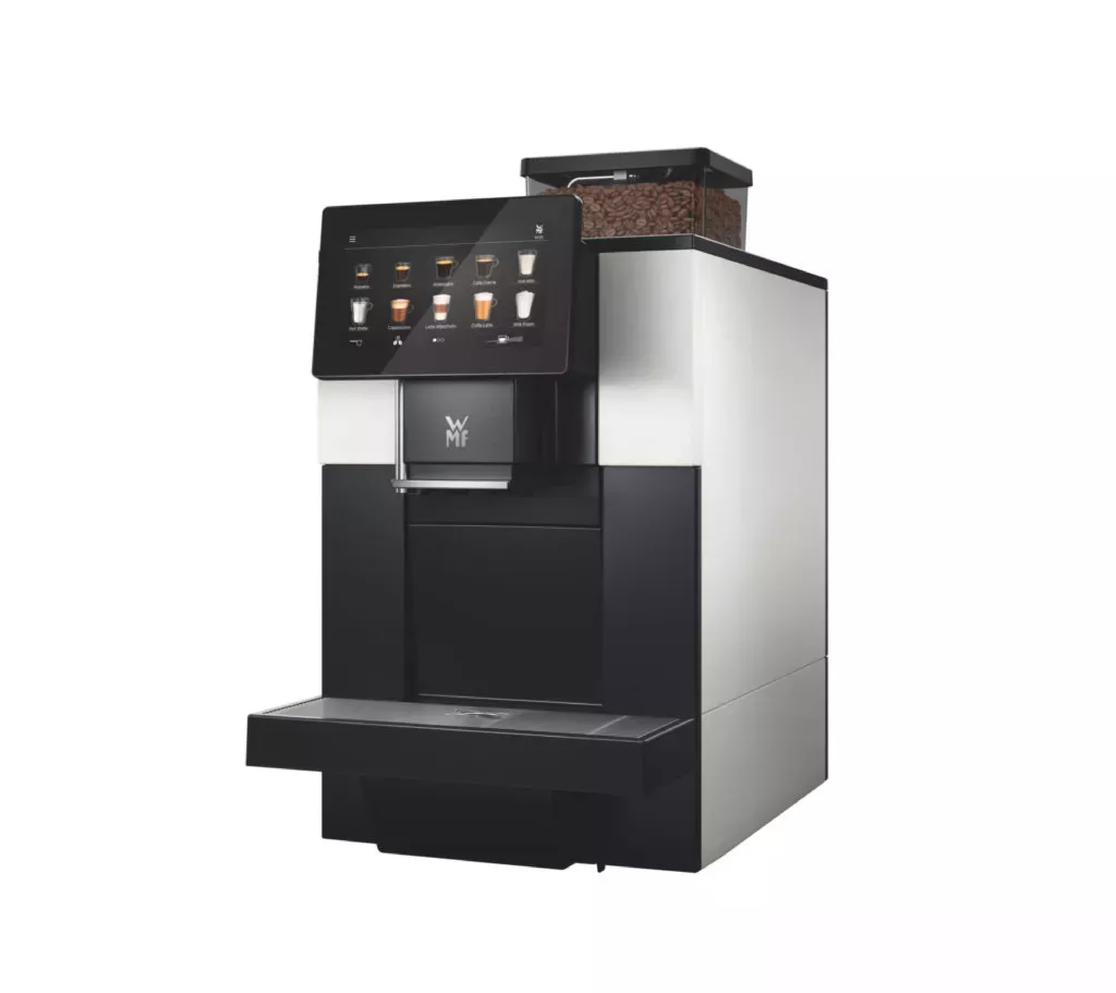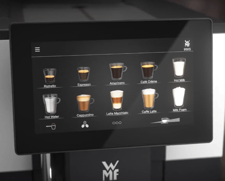 Ekspres do kawy WMF 950 S to kompaktowy, w pełni automatyczny ekspres klasy premium, który łączy nowoczesny design z niemiecką precyzją wykonania. Dzięki intuicyjnemu, kolorowemu ekranowi dotykowemu oraz wysokiej jakości komponentom, urządzenie doskonale sprawdzi się w małych biurach, hotelach, pensjonatach oraz niewielkich punktach gastronomicznych.