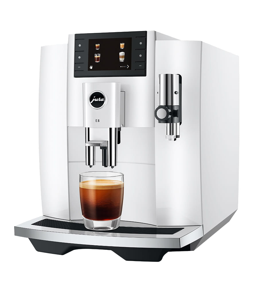 Dzierżawa ekspresu Jura E8 Piano White dla firm – w jednej miesięcznej opłacie otrzymujesz ekspres, regularne dostawy świeżo palonej kawy oraz pełny serwis. Cena obejmuje czynsz za dzierżawę ekspresu do biura, hotelu lub pensjonatu.