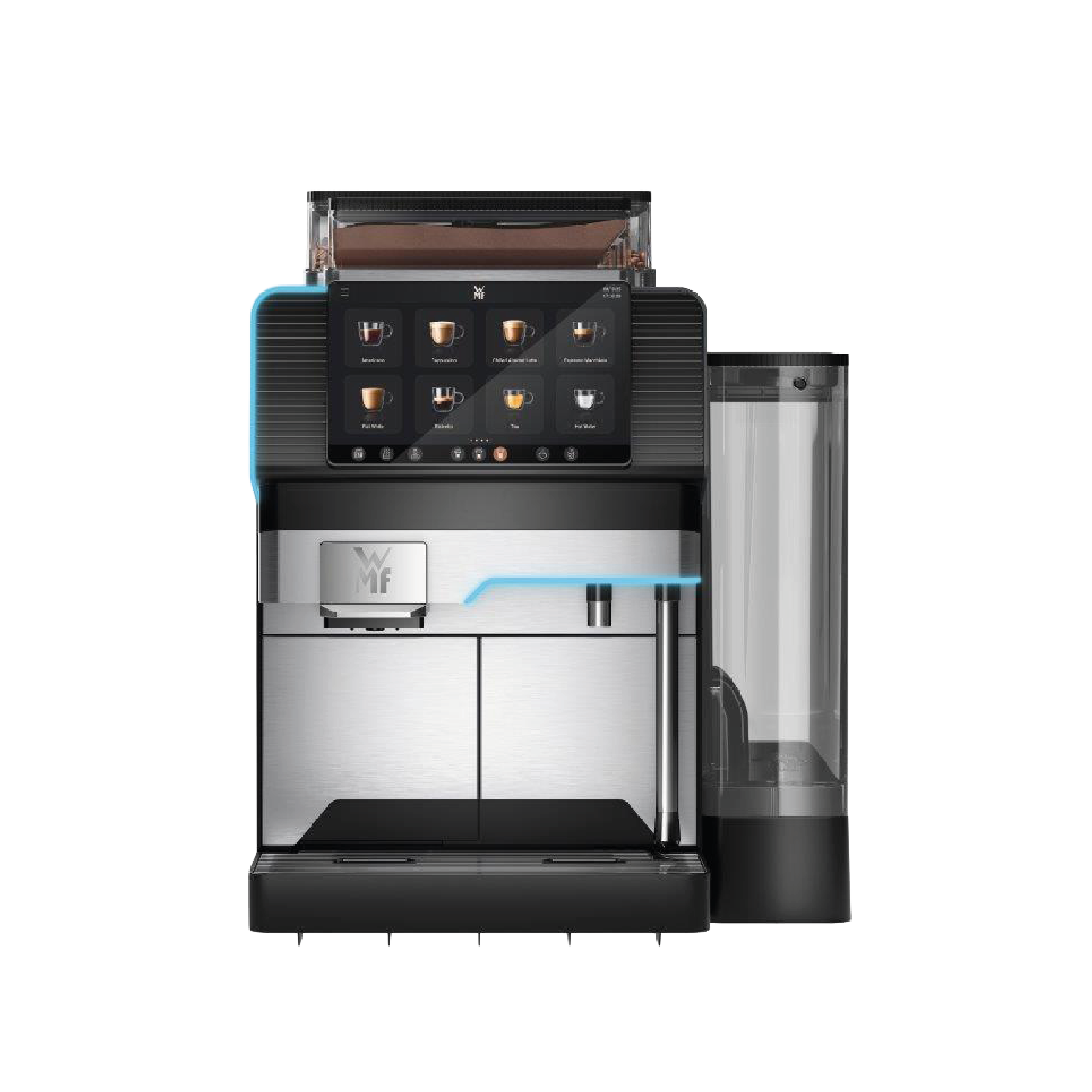 WMF Elevation 10 to kompaktowy, w pełni automatyczny ekspres do biura, hoteli i gastronomii, który łączy nowoczesny design, intuicyjną obsługę i wysoką jakość parzenia. Przy wydajności do 50 filiżanek dziennie oferuje szeroką gamę napojów kawowych, mlecznych i czekoladowych. Idealny do miejsc, w których liczy się niezawodność, łatwość użytkowania i styl premium.