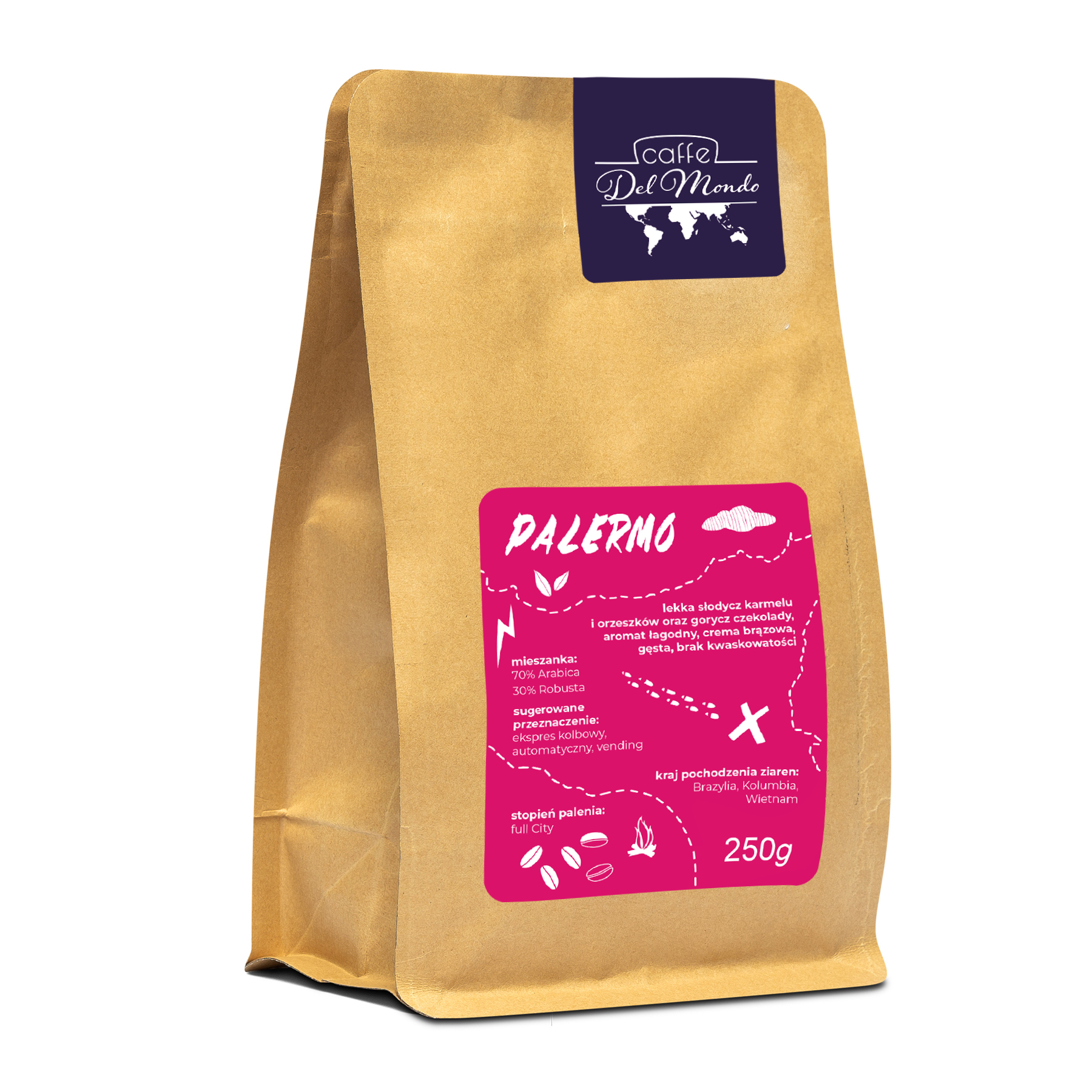 Blend Palermo to kawa składająca się w 70% z Arabiki i 30% Robusty. Kawa pochodzi z Brazylii, Kolumbii i Wietnamu.