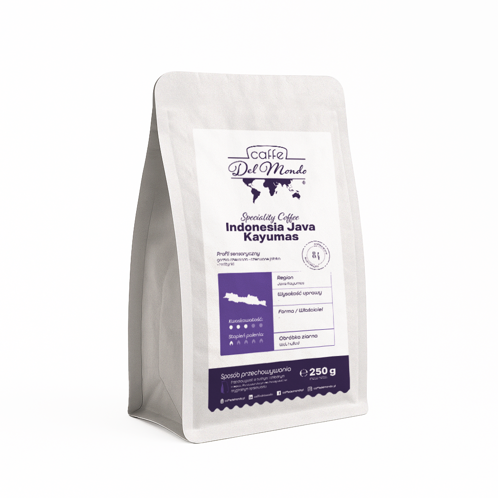 Indonesia Java Kayumas to wyrazista kawa single origin z wyspy Jawa, która w jaśniejszym paleniu odkrywa bardziej złożone i subtelne oblicze klasycznego profilu regionu. W filiżance pojawiają się nuty czerwonego jabłka, delikatnej czekolady i przypraw korzennych, uzupełnione lekkim, ziołowo-ziemistym akcentem oraz czystym, eleganckim finiszem.